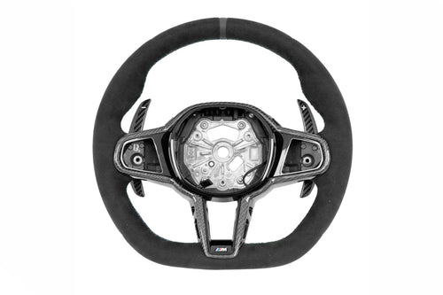 BMW Carbon Fibre Steering Wheel Upgrade - TRE LCI-Style Facelift for G87 M2, G80/G81 M3, G82/G83 M4, G42 2 Series, G20/G21 3 Series, G22/G23 4 Series, F90 M5 | Alcantara/Perforated Leather | LED/No LED