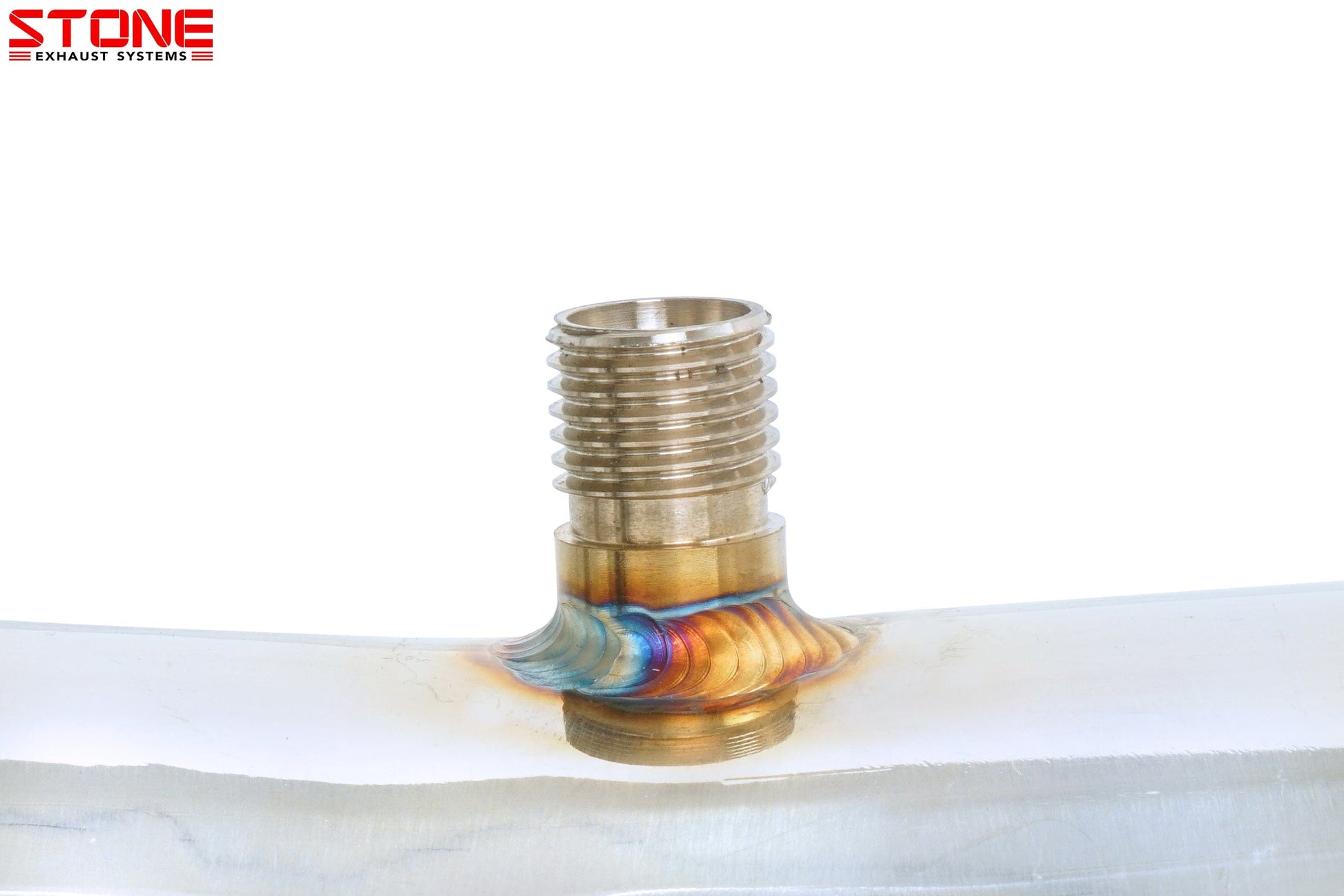 The turbo to downpipe area experiences extreme heat. Stone uses crisscross and overlapping welding to increase weld width and penetration, improving endurance where it matters most.