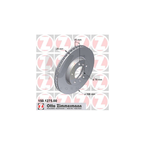 BMW 5 Series Brake Disc Rotor 296x28mm – Zimmermann 150.1275.00, High Carbon, Internally Vented, OE-Quality Replacement
