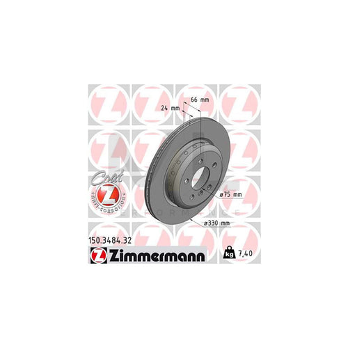 Zimmermann Formula F Coat Z Brake Disc 150.3484.32 for BMW 5 Series | 330mm x 20mm (330x20) High-Carbon Internally Vented Two-Piece Coated Rotor