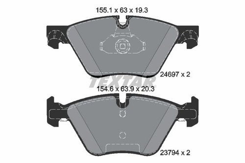 Textar 2469781 ePad Brake Pad Set for BMW 5 Series (Teves calipers) - Low Dust, Quiet, Wear Indicator Ready - OE Quality Replacement