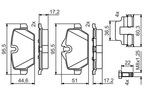 Bosch 0986495276 Brake Pad Set BP1582 with Anti-Squeak Plates & Piston Clip for BMW 1 Series E87 & 3 Series E90 (120d 120i 316i 318d 318i 320i) Replaces 0 986 495 276