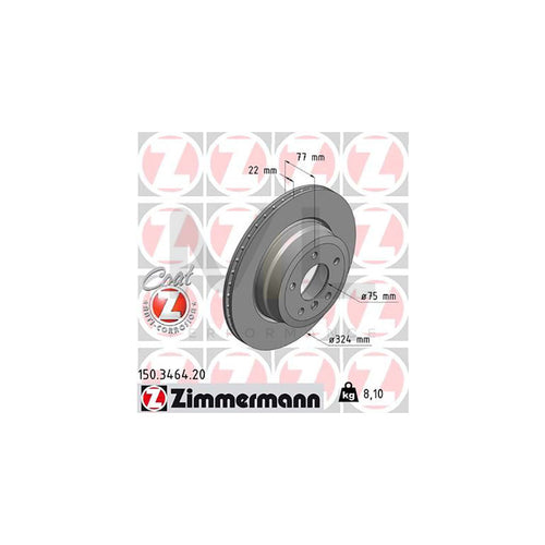 Zimmermann COAT Z Brake Disc 150.3464.20 for BMW 1 Series, 324 mm, Internally Vented, High-Carbon, Anti-Corrosion Coated Rotor