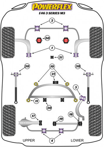 BMW E46 M3 Powerflex PFF5-5601GM3 Front Wishbone Rear Bushes, Caster Offset Polyurethane – Front Control Arm/Lollipop Bush Kit (Pair)