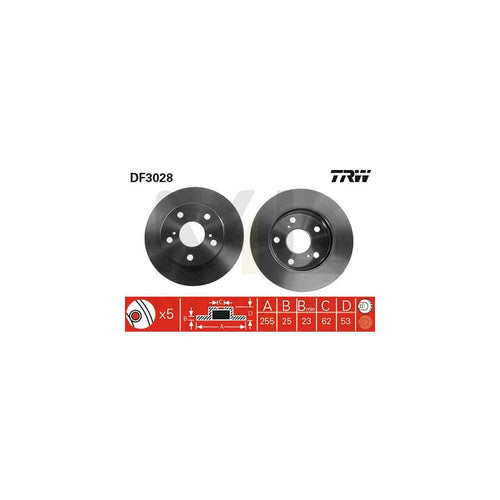TRW DF3028 Vented Brake Disc Rotor 255mm x 25mm, 5-Hole - OEM Quality Replacement