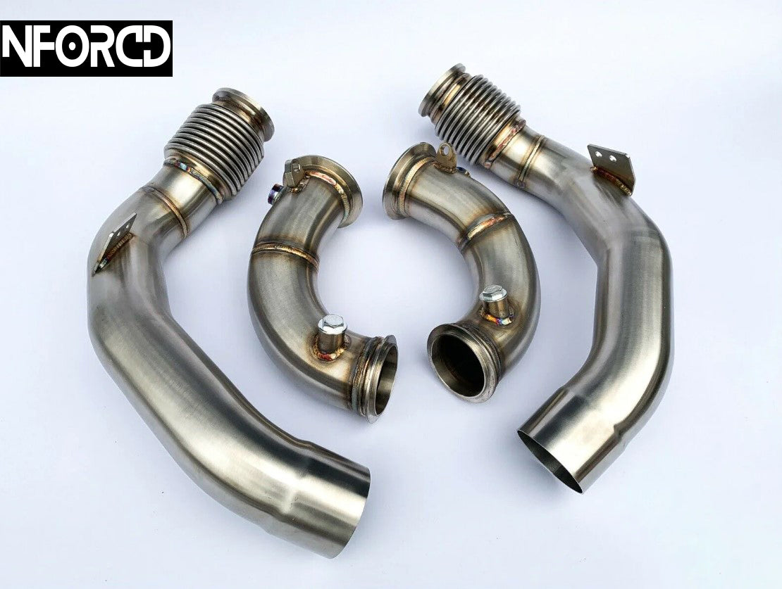 Popular searches and keywords: BMW M5 Competition decat downpipes, BMW F90 M5 downpipes, S63M downpipes, 3 inch downpipes, catless downpipes, de cat downpipes, de-cat downpipe, turbo downpipe upgrade, performance exhaust upgrade M5, stage 2 downpipes, V-band downpipes, stainless steel SS304 downpipes, mandrel bent BMW M5 downpipe, pops and bangs exhaust M5.