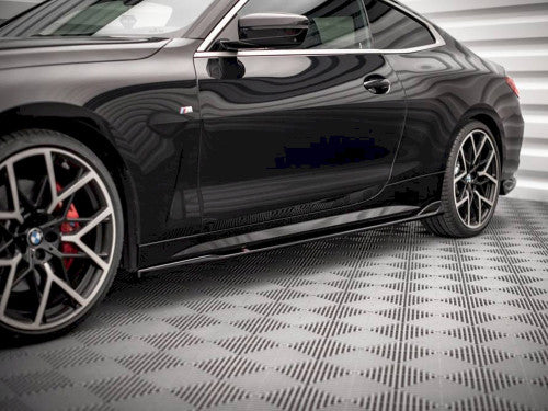 Maxton Design Gloss Black Side Skirts Diffusers V.2 for BMW 4 Series G22 M-Pack 2020 onwards