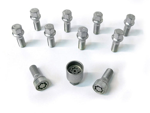 H&R BMW F/G Chassis Extended Wheel Bolts & Wheel Locks for 13/15/18mm Spacers - M14x1.25 43mm Conical Seat 17mm Hex - Silver - TÜV Approved - Set of 10 (14254301SET)