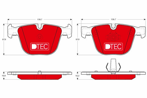 TRW DTEC COTEC GDB1892DTE Brake Pad Set - Not Prepared for Wear Indicator (No Wear Sensor) - Low Dust - Fits BMW X5/X6, X5 M/X6 M (E70 E71 F15 F16 F85 F86)