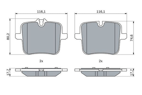 Genuine Bosch 0986494561 Brake Pad Set for BMW 1 Series (F20 F21) & 2 Series (F22 F23) - Anti-Squeak Plate & Piston Clip Included - Also 0 986 494 561 / BP1482
