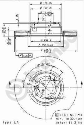 Brembo Coated Disc Line 09.6913.11 Brake Disc Rotor for BMW Z8 Roadster (E52) | High-Carbon, Internally Vented, Coated | 334x32 mm | 5-Hole | Includes Bolts/Screws
