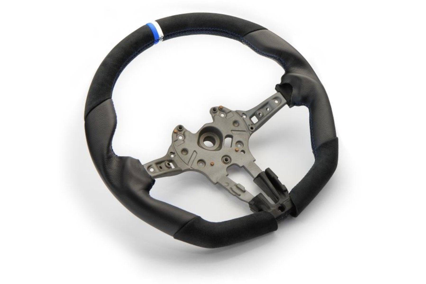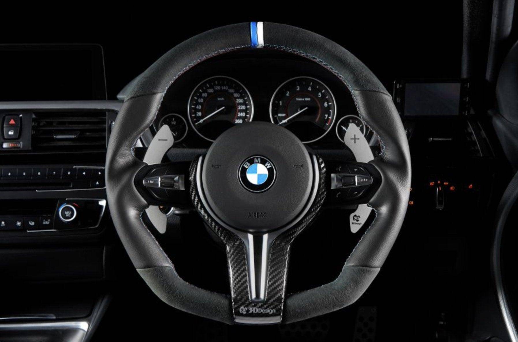 3DDesign new Sport Steering Wheel utilizes an original, gun-grip style frame, with a shape for extra knee clearance. Wrapped in Alcantara on the top and bottom, we use genuine leather in the main grip positions for ease of cleaning. The centre marker, designed to help judge steering angle, is rendered in 3DDesign signature blue and white colour scheme. All switches, plus the airbag module etc. can be swapped from the factory wheel. The stitching comes in either a sporty, mature blue and black combination, designed to suit a wide variety of interiors, or a tricolour pattern, perfect for M models. You can also purchase the wheel with our carbon steering wheel cover as a set.