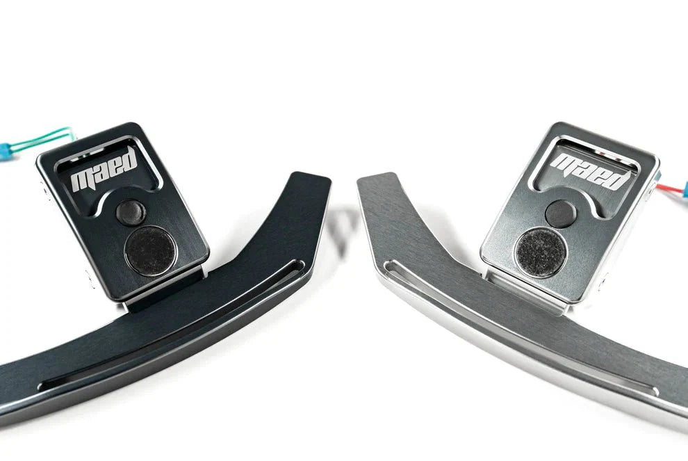 Upgrade your BMW driving experience with the Maed magnetic paddle shifters. Designed specifically for the latest Gen 3 BMW M Performance Steering Wheel, these premium aluminium paddle shifters deliver a crisp magnetic click, faster manual shifts and total confidence on road and track. They follow the natural curves and lines of the OEM M Performance wheel for a factory-style fit and finish, while giving you the tactile, performance feel you want from a magnetic paddle shifter upgrade.