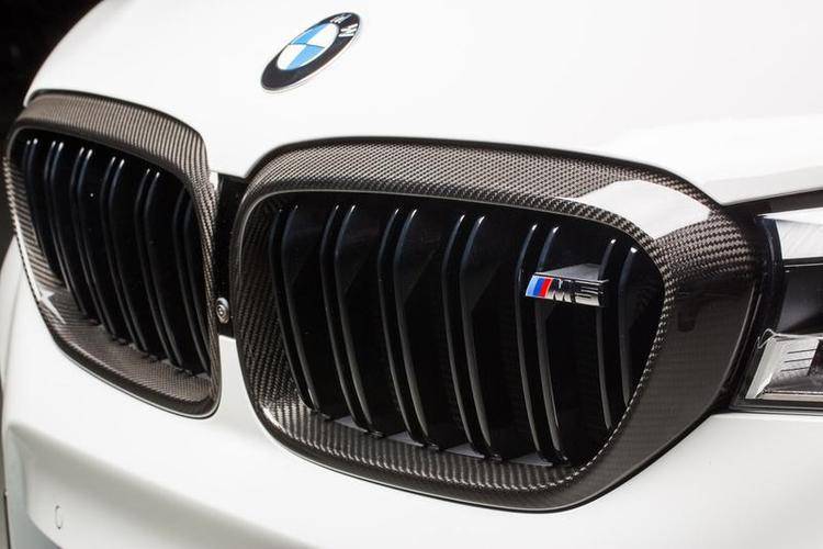 BMW M5 F90 kidney grilles. BMW M5 Competition carbon fibre kidney grilles. Genuine BMW M Performance front grilles. OEM BMW grille set for F90 M5. Carbon fibre (carbon fiber) kidney grille upgrade for BMW M5 Pre LCI 2017 to 2020. F90 M5 grille upgrade UK. BMW M5 carbon fibre front grilles.