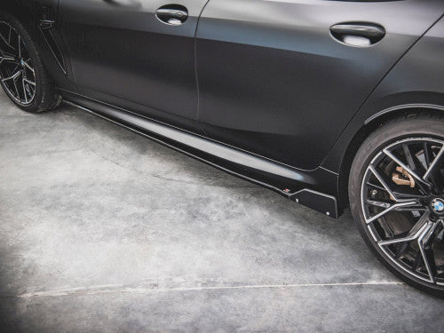 Maxton Design Gloss Black Side Skirts Diffusers with Flaps V.1 for BMW M8 Gran Coupe F93 and BMW 8 Series Gran Coupe G16 M Pack 2019 onwards